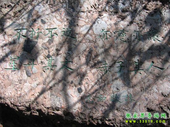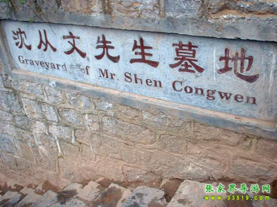 從古城的東門城樓外的虹橋前沿江下行3華里路程,到得聽濤山,從山道向右拾階而上,不遠(yuǎn)處便能看見一塊石碑,上寫“沈從文墓地”5個(gè)遒勁大字。再不遠(yuǎn)處置有一塊豎長(zhǎng)的石碑,上面刻有畫家黃永玉為表叔沈從文題寫的碑文:“一個(gè)士兵不是戰(zhàn)死沙場(chǎng),便是回到故鄉(xiāng)。”墓地建在一塊狹長(zhǎng)的小草坪上,沒有墳冢,只樹有一塊6噸多重的天然五彩石,成為沈從文墓獨(dú)特的標(biāo)志。石正面鐫刻的是沈從文富有哲學(xué)內(nèi)涵的手跡:“照我思索,能理解我;照我思索,可認(rèn)識(shí)人。”石背面是沈從文的姨妹、美國(guó)耶魯大學(xué)教授張充和撰書,沈從文侄女婿、中央美術(shù)學(xué)院著名雕塑家劉煥素教授鐫刻的挽聯(lián):“不折不從,星斗其文;亦慈亦讓,赤子其人。”其聯(lián)句尾四字:“從文讓人”透射出先生一生的高風(fēng)亮德。沈從文墓地清幽靜謐,四周綠樹環(huán)抱,墓地上和四周的草坪上擺放著無數(shù)的野花和竹編的一些蝴蝶,這些都是前來膜拜的旅人們留下的。