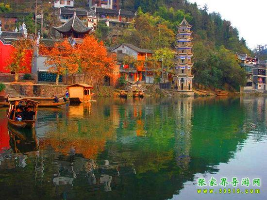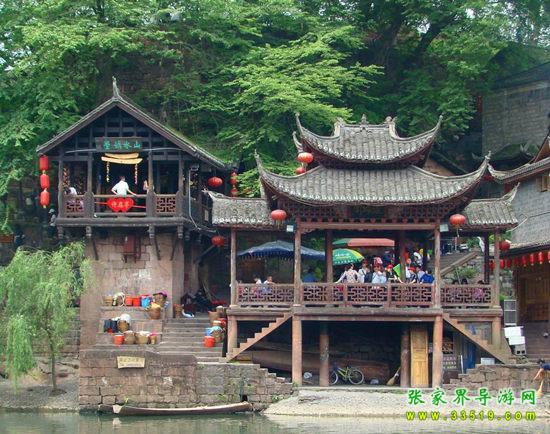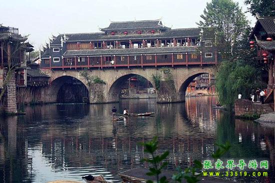 沱江河是古城鳳凰的母親河,她依著城墻緩緩流淌,世世代代哺育著古城兒女。坐上烏蓬船,聽著艄公的號子,看著兩岸已有百年歷史的土家吊腳樓,別有一番韻味。順?biāo)?,穿過虹橋一幅江南水鄉(xiāng)的畫卷便展現(xiàn)于眼前:萬壽宮、萬名塔、奪翠樓……一種遠(yuǎn)離塵世的感覺悠然而生。沱江的南岸是古城墻,用紫紅沙石砌成,典雅不失雄偉。城墻有東、北兩座城樓,久經(jīng)滄桑,依然壯觀。