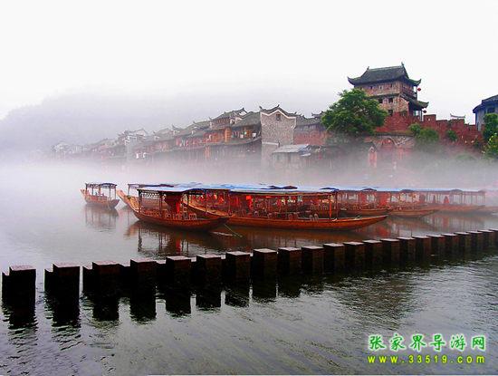 沱江河是鳳凰的母親河,她依著城墻緩緩流淌,世世代代哺育著古城兒女。坐上烏船,聽著艄公的號子,看著兩岸已有百年歷史的土家吊腳樓,別有一番韻味。