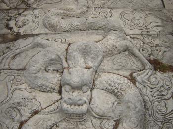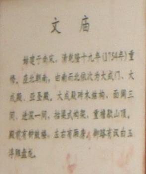 廟前面有學(xué)宮坪,亦名學(xué)坪,坪南端有大明壁。廟宇紅墻黃瓦,氣勢宏偉。正門曰奎星門,前院左右各植檜樹,常年翠綠,散發(fā)幽香。奎星門內(nèi)有月形泮池,池周護以石欄。泮池附近有石坊三座,正南石坊匾額鐫有“斯文在茲”四字,東西兩坊貫通街衢。通過石坊便是大成門。進門左右是飛檐綠瓦的鐘鼓亭。大成門通向大成殿,有石鋪甬道直抵大殿臺基。臺高一米,全系石塊疊成。臺階分左右兩道,中有石雕盤龍,綴以云海波濤,栩栩如生,躍然石上。大成殿為歇山式重檐結(jié)構(gòu),周圍有16根圓石柱,內(nèi)外枋、檁、藻井、斗拱、扇梧均五彩施繪,黃瓦飛檐,蔚為壯觀。殿后有亞圣殿,與大成門、奎星門前后襯應(yīng),更顯出大成殿主體的雄偉。