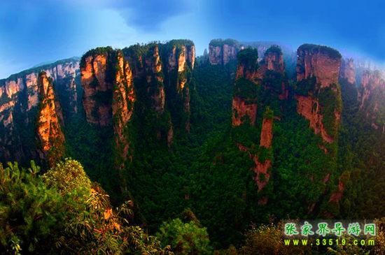 有人曾這樣評價(jià)張家界黃石寨:五步稱奇,七步叫絕;十步之外,目瞪口呆。黃石寨這里的每一座巖蜂都是一件古老的藝術(shù)品,它們?nèi)鐒Α⑷玑?、如龍首、如龜頭、如現(xiàn)代化都市的摩天大廈……1992年5月,兩位聯(lián)合國世界遺產(chǎn)委員會派來的藍(lán)眼睛官員面對黃石寨的磅砣氣勢哦哦連聲,嘆為觀止。
