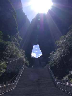 天門洞,而今天,在原地只能舉目見山不見洞了,欲觀望這一勝景,要到 四公里 之外的大 庸橋