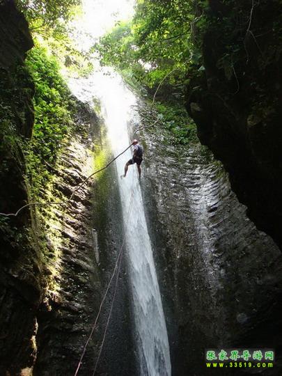 【吳王坡】來(lái)到這里以后,面前的絕壁逐漸開(kāi)闊,視野角度也慢慢放大。從我們這里平視出去,就可以看到對(duì)面絕壁的全貌,從山巔到溪谷的底部,一覽無(wú)余。對(duì)面的絕壁后面,就是著名的吳王坡村。相傳,李自成帶著大順帝的光環(huán),敗走北京城以后,轉(zhuǎn)戰(zhàn)秦嶺,先后渡過(guò)黃河和長(zhǎng)江,一路南下,來(lái)到了湘西,最后還是回天無(wú)力,只有兵敗歸隱,在緊鄰我們張家界市的常德市石門(mén)縣的夾山寺皈依佛門(mén)。對(duì)面的吳王坡村,就是傳說(shuō)中“沖冠一怒為紅顏”的吳三桂追殺李自成起義大軍,和起義軍進(jìn)行生死決戰(zhàn)的古戰(zhàn)場(chǎng)之一。傳說(shuō)吳三桂在此大勝李自成起義軍,殺死起義軍幾千人,是吳三桂一生之中的“惡仗”之一。當(dāng)?shù)氐?a class="insidelink" href="http://www.qianzhihui.com/fengqing/" title="土家">土家人后裔,根據(jù)這段歷史上的傳說(shuō),將村子的名字叫成了“吳王坡”。吳王坡村的名字又叫吳亡坡,這個(gè)“亡”是“滅亡的亡”,是說(shuō)吳三桂雖然此戰(zhàn)勝利以后,坐鎮(zhèn)云南,被封為“平西王”,最后還是在“三藩叛亂”之中走向了滅亡。而滅亡的因緣和轉(zhuǎn)折,在當(dāng)?shù)乩习傩湛磥?lái),就是這里,就在吳王坡。所以,吳王坡又有了“吳亡坡”的名字演繹成分。