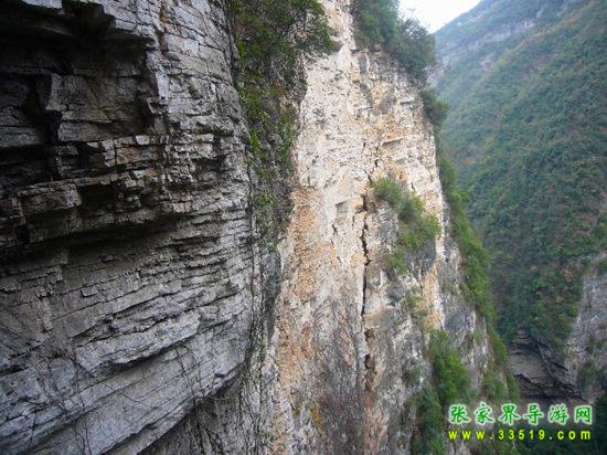 【圓桶絕壁】來(lái)到這里,我們朝右邊看去,會(huì)驚奇地發(fā)現(xiàn),這里形成了一個(gè)天然的圓桶型的絕壁,既不是人工所鑿,也不是瀑布流水所沖刷而成的。同時(shí),整個(gè)絕壁上一直是只長(zhǎng)草而不長(zhǎng)樹(shù)。這到底是怎么一回事呢?連地質(zhì)學(xué)家和植物學(xué)家都不能給出準(zhǔn)確的解釋。這便是我們張家界大峽谷五大未解怪謎的第三謎。