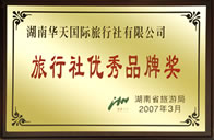 我們是您的最佳選擇! 值得信賴。 另: 1、2009年經(jīng)省旅游局和省世博辦推薦,華天國旅成為上海世博會(huì)團(tuán)隊(duì)票合作銷售“湖南省唯一指定旅行社”。 2、最新評(píng)定:華天國旅為 湖南五大地接社之一 (2010年4月22日) 3、最新評(píng)定:華天國旅為:湖南五星級(jí)旅行社 (2010年5月10日)