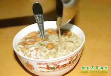 后來(lái)當(dāng)?shù)匕傩占娂姺滦?,漸成習(xí)俗,遂演變成今天的“油茶湯”。“油茶湯”味道鮮美,既能作為食品充饑,又能作為飲料提神。土家族有一首歌謠這樣唱道:“土家兒女愛(ài)唱歌,只因燒了油茶湯喝……”