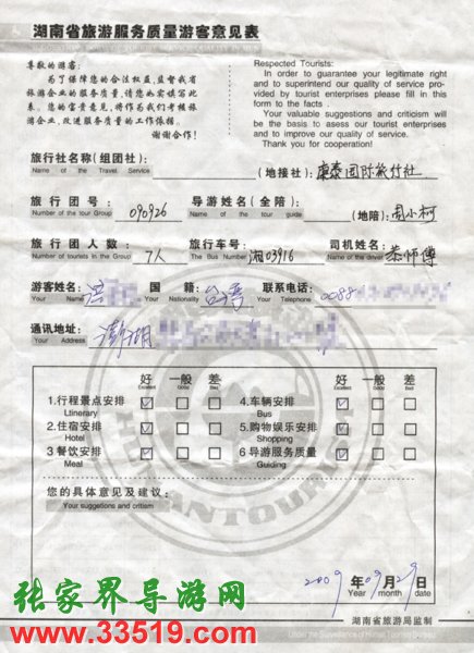 9月26日臺灣李洪先生一行7人接待質(zhì)量反饋單: