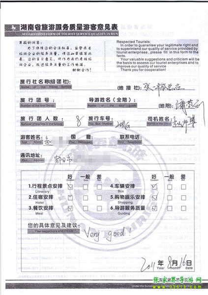 2011年8月16日趙先生旅游質(zhì)量反饋:very good!