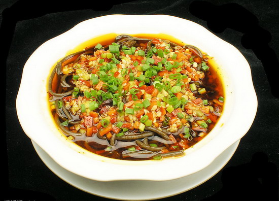 “蕨根粉”的樣子看上去就是黑色的粉絲,它是從野生蕨菜的根里提煉出來的淀粉類做成的粉絲食品。因為蕨菜的根是紫色的,所以做出的粉絲也就成了“黑粉絲”。蕨根粉保留了蕨菜根里大部分營養(yǎng)(涼粉、粉絲營養(yǎng)與原料比損失的多且豆粉的不易消化),而“蕨根”對人體的保健作用是根莖類食物里名列前茅的,這也是符合顏色越深的,營養(yǎng)越高規(guī)律的又一個例子。