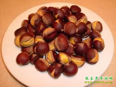 板栗與尖栗(俗名“漩栗”),山毛櫸科,是木本植物,主要含淀粉、糖等,在武陵源區(qū)各景區(qū)都有廣泛的分布。它們是多年生落葉喬木,一般樹高3至5米到10米左右。栗樹春末夏初開花,夏天生長,秋天結(jié)實(shí)。果實(shí)成球形,外殼帶刺,里面栗子光滑成紫色,所以農(nóng)家有“娘被千針衫,兒穿紫龍袍”的謎語。板栗成熟以后,外殼便自然張開,栗子隨風(fēng)脫落。如在板栗林里撿栗子,倒是一大樂趣。“白露”過后,板栗大量成熟,滿樹的栗球都張開了笑口,一遇到颯颯吹來,栗子便唏唏唰唰唰隨風(fēng)脫落,滾進(jìn)山溝里或低洼處,如果運(yùn)氣好,可以撿到一窩一窩的板栗,有時(shí)可以撿幾十斤。