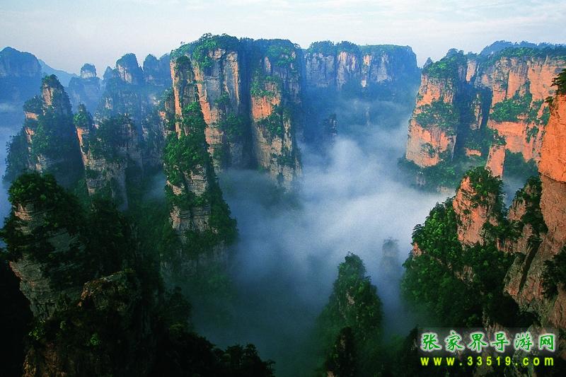 第二天早上,我們參觀了袁家界的風景,其中最有名的當然數(shù)天下第一橋,這是由兩座巖石山的山頂自然生長在一起,非人所能為也。天下第一橋的稱號當之無愧啊。當然在袁家界,后花園也是不能不看的。張家界號稱“峰三千,水八百”,在這里你就能明顯的感覺到這句話的前半句是那么的實在??赐?a class="insidelink" href="http://www.qianzhihui.com/" title="張家界">張家界的核心袁家界,我們乘車到了天子山(張家界景區(qū)內(nèi)的最高的地方)。玩了賀龍公園、御筆峰、仙女散花、西海、石船出海、仙人橋、天子廟、十里畫廊、一步難行。不巧的是,那天山上下了一點陣雨,雨后一條彩虹掛在天上,更重要的是山上起了一點霧,使整座山都籠罩在霧中,若隱若現(xiàn),看上去就象是在云海中,好象老天特地配合我們似的,難得一見的西海等正好被我們趕上了。江導告訴我們,這樣的機會是很難得的,可能是張家界為了感謝我的再次到來,給了我一個特別的禮物吧。我大笑。晚上趕到昨天住的地方去住宿。不提。